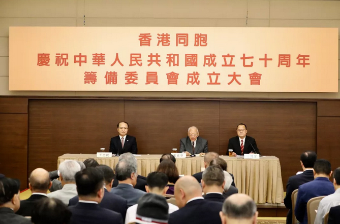 7月11日,香港同胞慶祝中華人民共和國成立70周年籌委會成立大會在香港中華總商會禮堂舉行。我辦主任王志民應(yīng)邀出席并致辭。