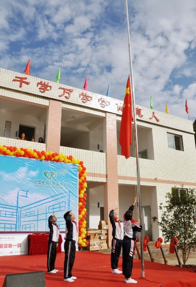 十月的川西南秋意漸寒,但在四川省資陽市雁江區(qū)丹山鎮(zhèn)中國免稅希望小學(xué)全體師生們的心里卻是暖意融融,燦如夏花。從9月開始大家再也不用擠在漏雨開裂的 教室里上課,在泥濘的操場上玩耍了。在新落成的教學(xué)樓里,在平坦的水泥操場上,同學(xué)們正和幾位自北京中免集團(tuán)共青團(tuán)的大哥哥大姐姐一起認(rèn)真的讀書、開心的 嬉鬧著……