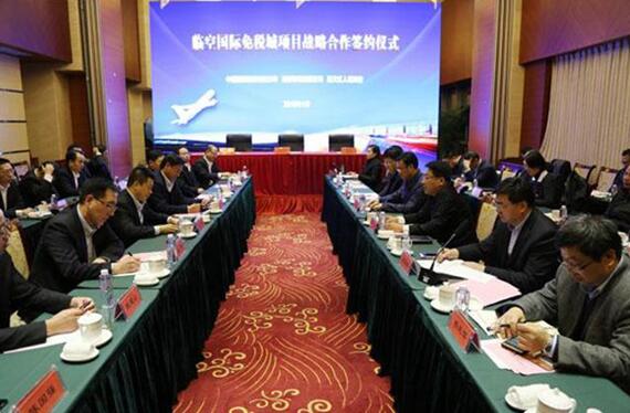 簽約儀式前,三方共同聽取了北京臨空經(jīng)濟(jì)核心區(qū)關(guān)于臨空國際免稅城項(xiàng)目的初步規(guī)劃情況,三家單位主要領(lǐng)導(dǎo)分別進(jìn)行了熱情洋溢的講話。