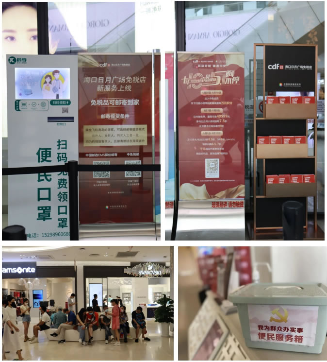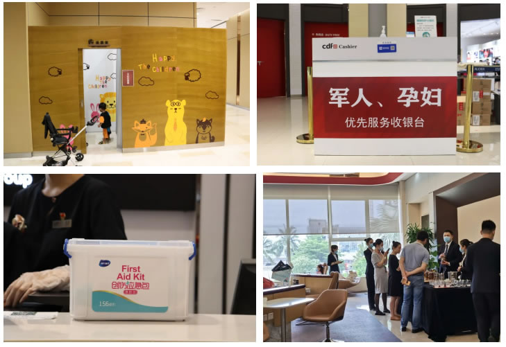 各門店結(jié)合實際情況,考慮顧客購物細節(jié),提供了多項貼心服務:放置離島免稅政策說明牌,防疫溫馨提示牌、店面各品牌中英文導購圖,方便顧客了解相關信息;人流密集區(qū)域加裝空調(diào),調(diào)節(jié)舒適溫度;放置6套沙發(fā)、14條長椅,配備客用飲水機和紙杯,方便顧客休息;提供女性用品、行李寄存、貴重物品遺失招領、嬰兒車服務和傘套機服務,加強細節(jié)服務;增加25部移動POS機,節(jié)省顧客排隊等候時間;門店出入口安裝人體熱成像測溫儀,提高防疫體溫檢測效率;配備口罩、手消液和醫(yī)用濕紙巾等防疫物資,方便顧客做好個人防護;設置客服專線,確保在1小時內(nèi)給予顧客答復。